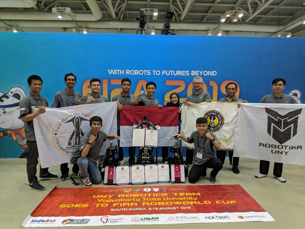 Tanggal 12-16 Agustus 2019 akan dikenang dengan manis oleh tim Robotika Universitas Negeri Yogyakarta (UNY). Keikutsertaan mereka untuk pertama kalinya di kompetisi robot Federation of Internasional Robot-Sports Association (FIRA) sukses menyabet 5 penghargaan sekaligus.