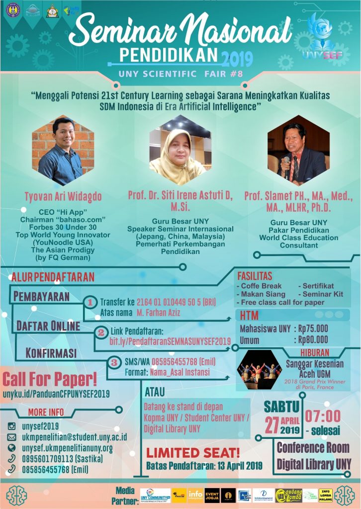 UNY SCIENTIFIC FAIR 2019 Proudly Present: “SEMINAR NASIONAL PENDIDIKAN UNYSEF 2019”