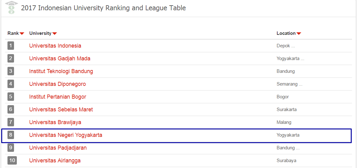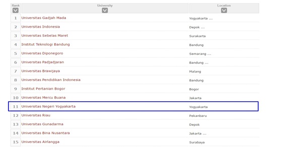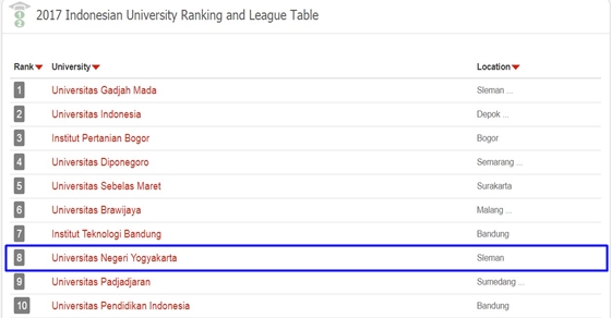 Peringkat Universitas di Indonesia Versi 4ICU Januari 2017