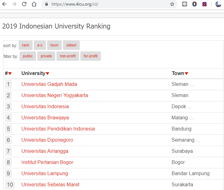 Peringkat Universitas di Indonesia Versi 4ICU Juli 2019