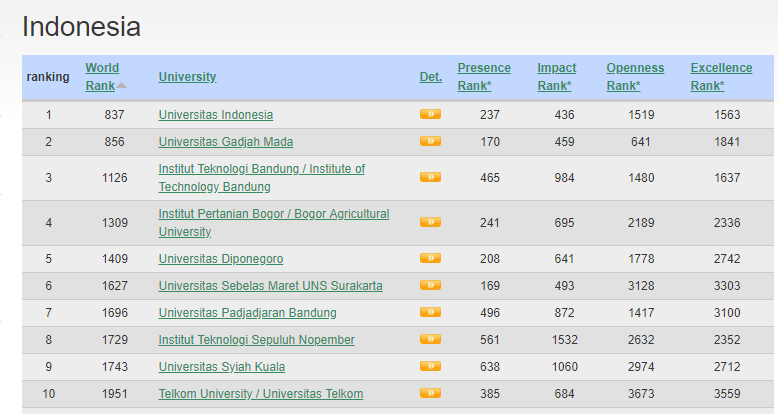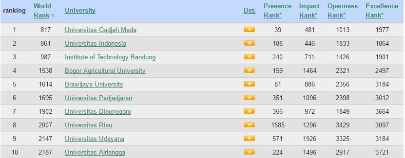 Universitas Terbaik di Indonesia Versi Webometrics Juli 2018