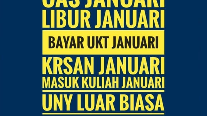 Bulan desember akan segera berakhir, dimana orang-orang mulai bersiap untuk liburan diakhir tahun. Namun tidak dengan mahasiswa UNY, mereka masih disibukkan dengan Ujian Akhir Semester (UAS). Minggu tenang, rasanya tidak tenang karena masih berjibaku dengan tugas serta UAS. Ada dosen yang memberikan tugasnya di minggu tenang dan akan dikumpul pada bulan januari. Selain itu ada juga dosen yang memberikannya saat jadwal UAS tiba yaitu dibulan januari. Tentu hal tersebut menjadi bahan pikiran mahasiswa. Ketika mereka…