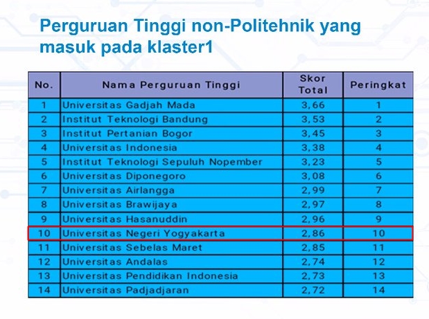 Usai perayaan HUT Kemerdekaan RI ke-72 di lapangan kawasan Pusat Penelitian Ilmu Pengetahuan dan Teknologi (PUSPIPTEK) Serpong, Menristekdikti Mohamad Nasir mengumumkan klasterisasi dan pemeringkatan perguruan tinggi (PT) tahun 2017 kelompok non politeknik dan politeknik. Menristekdikti didampingi Sekjen Kemenristekdikti Ainun Naim, Dirjen Kelembagaan Iptek dan Dikti Patdono Suwignjo dan pejabat eselon I lainnya serta Tim Klasterisasi Perguruan Tinggi Indonesia 2017. Pengumuman pemeringkatan PT yang sudah dilakukan oleh Kemenristekdikti sejak tahun 2015 ini bertujuan untuk membangun landasan…