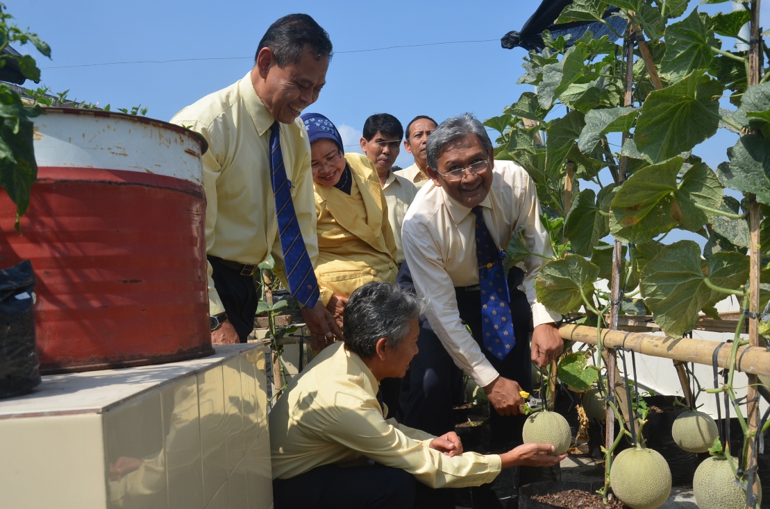 FMIPA UNY khususnya Jurusan Pendidikan Biologi mempunyai banyak laboratorium (lab), salah satunya green house yang ada di lantai 4 lab Biologi.Green house tersebut ditanami beberapa jenis tanaman di antaranya sawi, bayam, cabai, dan melon yang ditanam dan dikelolah oleh mahasiswa dan pengelola lab. Di tempat tersebut ada lebih dari 200 tanaman melon yang siap dipanen. Rektor UNY, Prof. Dr. Rochmat Wahab, M.Pd., M.A., bersama para pejabat UNY lainnya melakukan panen melon yang ada di green…