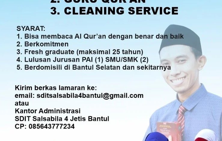 LOWONGAN TENAGA KEPENDIDIKAN SMK MA’ARIF 3 WATES Posisi Jabatan 1. GURU PRODUKTIF OTOMOTIF 2. GURU PRODUKTIF MULTIMEDIA 3. TENAGA PENGAMANAN SEKOLAH Kualifikasi: Laki-laki muslim ( 1 & 3) Lakilaki/Perempuan (2) Mudah beradaptasi, komunikatif dan cepat tanggap Pendidikan minimal S1 Pendidikan Teknik Otomotif (1) Pendidikan minimal S1 Pendidikan Teknik Informatika (2) Pendidikan minimal SMA/SMK/Sederajat (3) Mempunyai sertifikat Pendidikan Satpam/security (3) Mempunyai lisensi mengemudi mobil (SIM A) (1 & 3) Berkas yang dilampirkan: Surat lamaran dan CV (mencantumkan formasi dan…