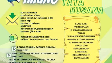 “Lowongan Kerja” Guru Tata Busana MAN 2 Bantul Syarat: 1. Laki-laki/perempuan 2. Usia maksimal 30 tahun 3. Kualifikasi pendidikan minimal…