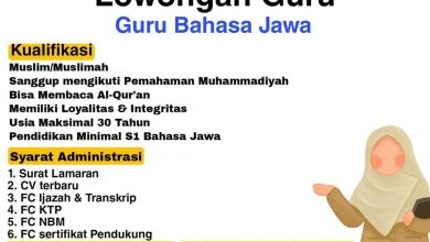 Dibutuhkan tenaga pengajar sebagai guru Bahasa Jawa di SMP Muhammadiyah 10 Yogyakarta Dengan kualifikasi seperti yang tertera di pamflet Untuk…