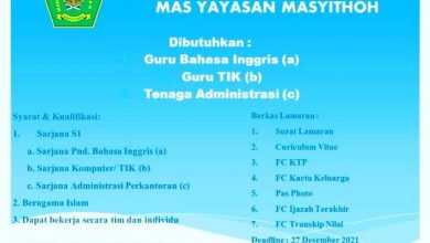 Lowongan Kerja MAS Yayan Masyithoh Gamping Dibutuhkan : – Guru Bahasa Inggris – Guru TIK – Tenaga Administrasi
